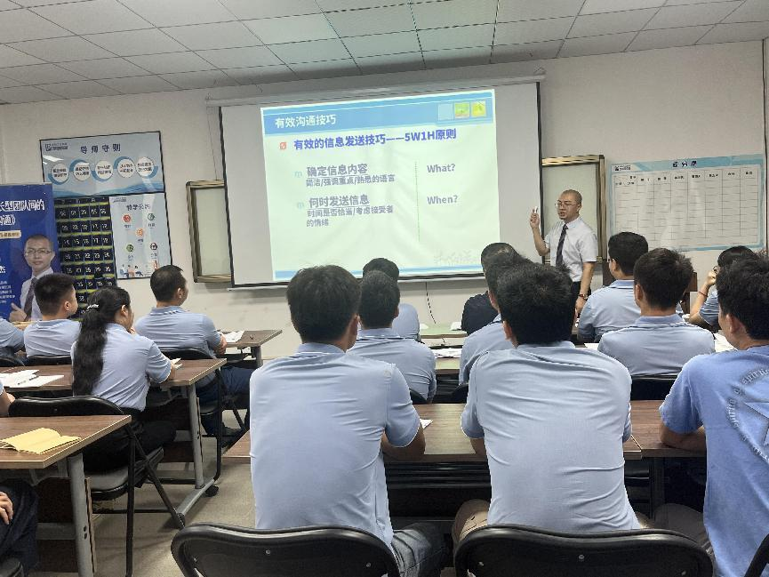 講師詳細(xì)講解了有效的信息發(fā)送技巧,通過(guò)有效的溝通技巧及信息反饋,把問(wèn)題集中在信息接收方可以改變的方面,從而高效精準(zhǔn)的完成對(duì)接工作。